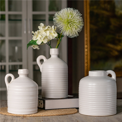 Florero de cerámica minimalista elegante con asa para el hogar, sala de estar, adorno artesanal decorativo, maceta de boda